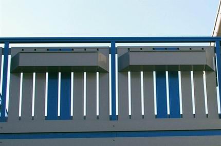 Einzelblumenbank 113 cm breit, im modernen Design komplett aus Aluminium. Max. Maße des einzusetzenden Blumenkastens: Breite 80 cm, Tiefe 19 cm, Höhe 16 cm