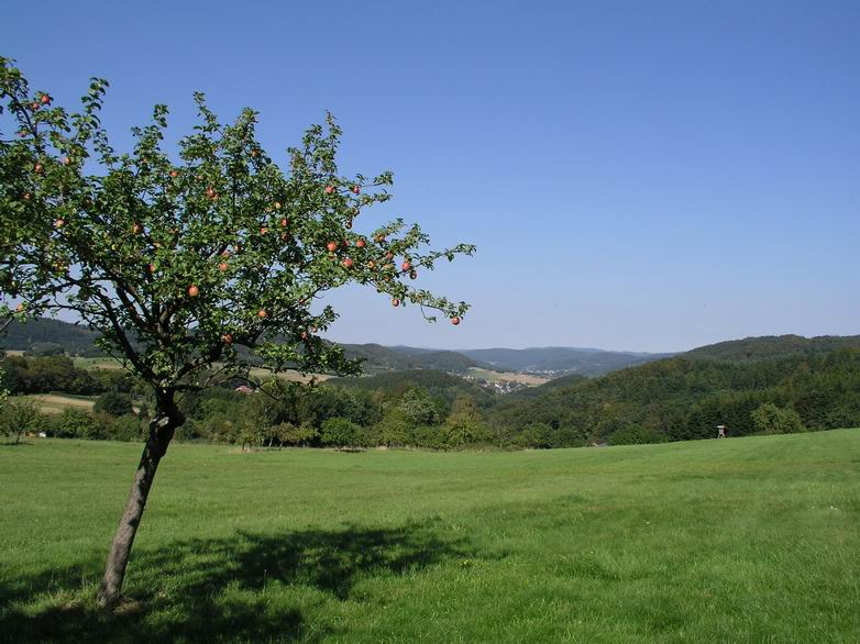 Hoch über Frechenhausen haben die frühreifen Äpfel Stellung bezogen.