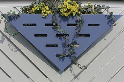 Einzelblumenbank 120 cm breit, eine reizvolle Kombination aus Massivholz und Edelstahl-Lochblech. Max. Maße des einzusetzenden Blumenkastens: Breite 80 cm, Tiefe 14 cm, Höhe 16 cm